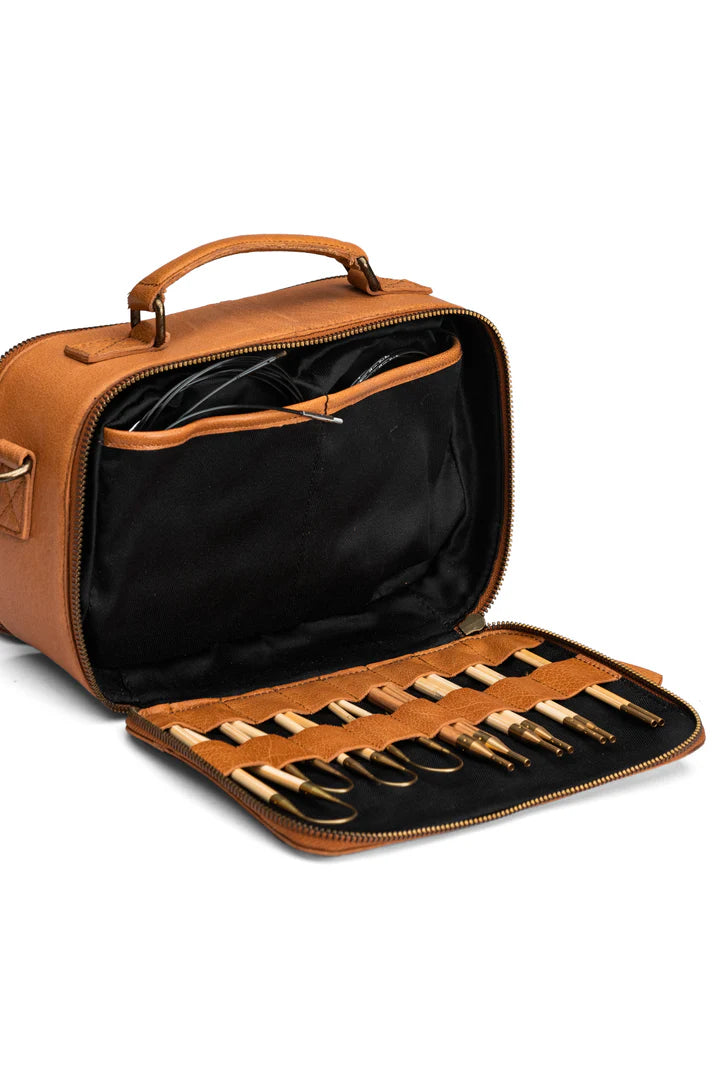 De tas heeft twee vakken met ritssluiting, waarin breinaalden, verwisselbare naaldpunten en draadgeleiders passen. Een van de vakken heeft een kleiner vakje met ritssluiting voor kleine breibenodigdheden zoals steekmarkeerders, haaknaalden, een schaar en een meetlint.