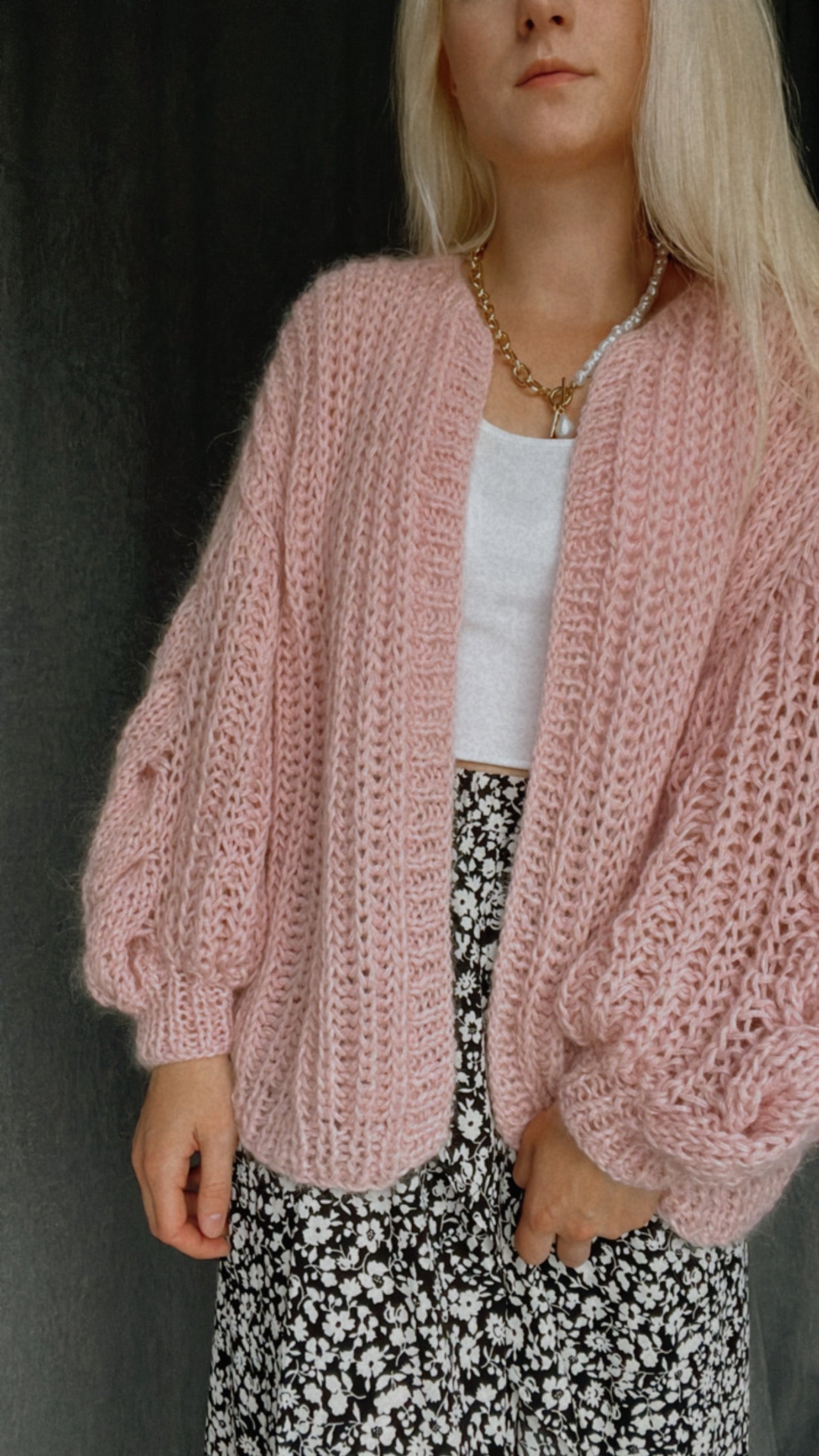Jaka tiek adīta patenta rakstā, adot rindas turp un atpakaļ. Katra daļa tiek adīta atsevišķi- kreisās puses priekšpuse / labās puses priekšpuse, muguras daļa. Kad ir uzadīts nepieciešamais garums, tad tiek veidots kakla daļas izgriezums. Tad jaka tiek sašūta, atstājot rokriņķu caurumus piedurknēm. Piedurknes tiek adītas klāt pie jakas rindās turp un atpakaļ, pēc tam sašujot kopā. Noslēgumā tiek veidota jakas apdare.